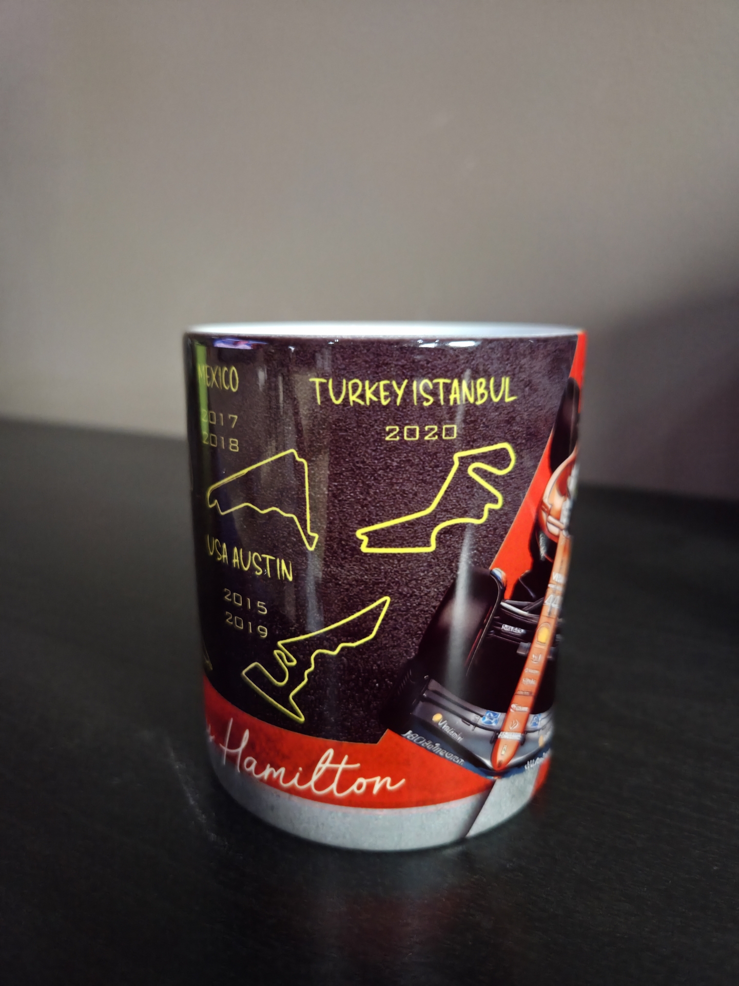 Egyedi rajzolású F1 Lewis Hamilton 330 ml bögre.
