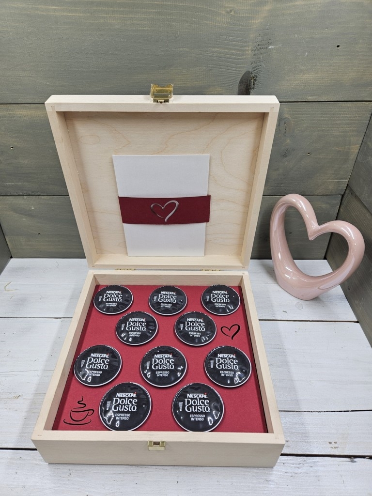 Az ár tartalmazza az ajándékdobozt és az általad kiválasztott édességet vagy kávét vagy teát, + 9 fakkos kivehető fa tea filter tartó betétet, illetve 1 darab üres borítékot. ( A borítékba személyre szóló jókívánság kártyát, üzenetet tudsz tenni.)