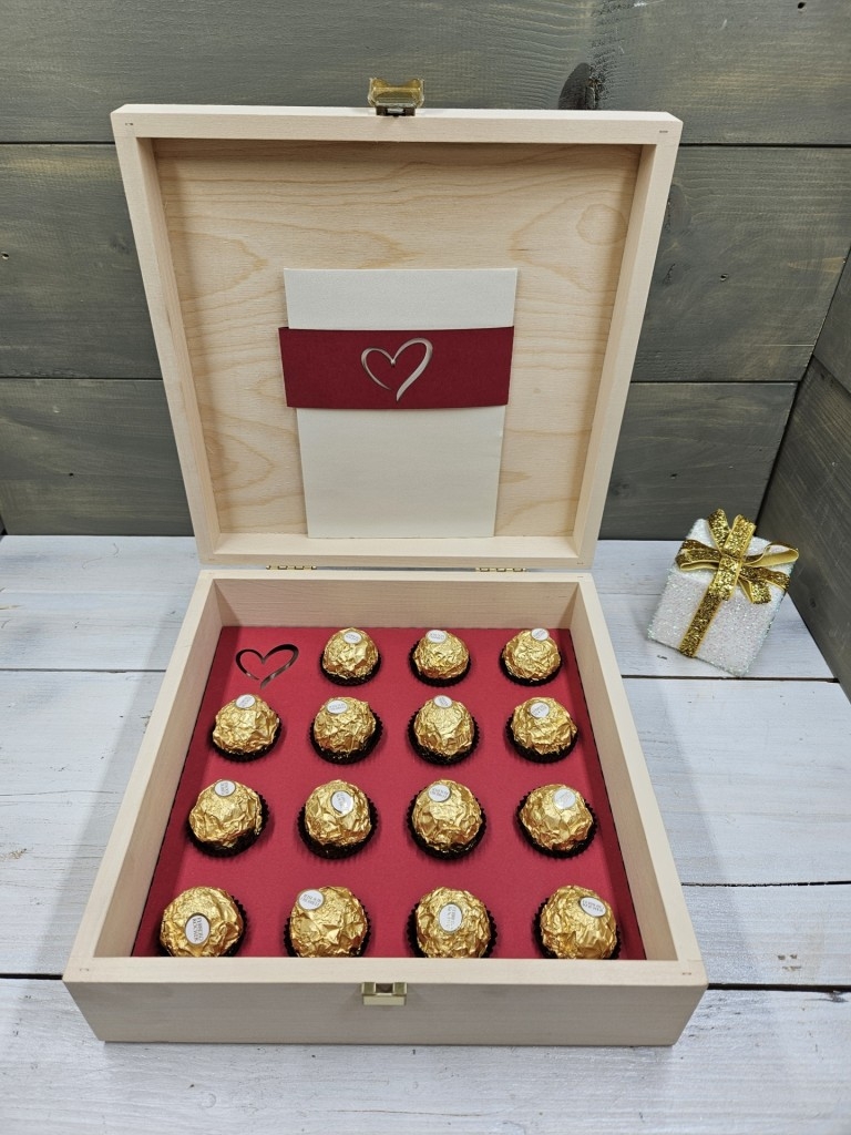 Az ár tartalmazza az ajándékdobozt és az általad kiválasztott édességet vagy kávét vagy teát, + 9 fakkos kivehető fa tea filter tartó betétet, illetve 1 darab üres borítékot. ( A borítékba személyre szóló jókívánság kártyát, üzenetet tudsz tenni.)