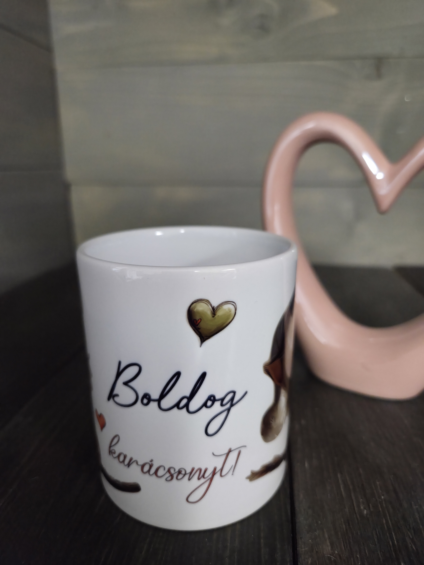 Cuki karácsonyi cica mintával és Boldog karácsonyt szöveggel nyomott bögre a cica szeretőknek.