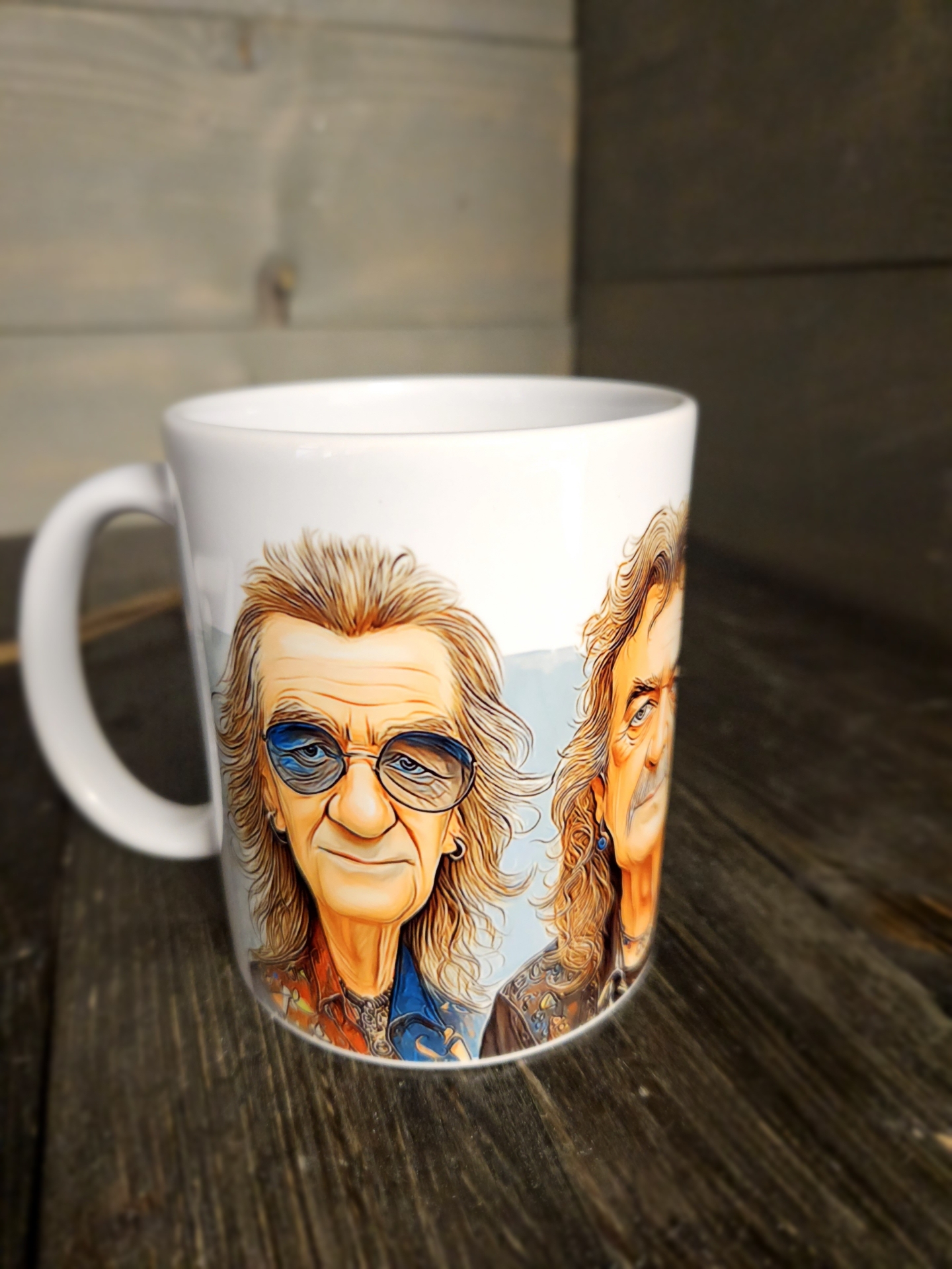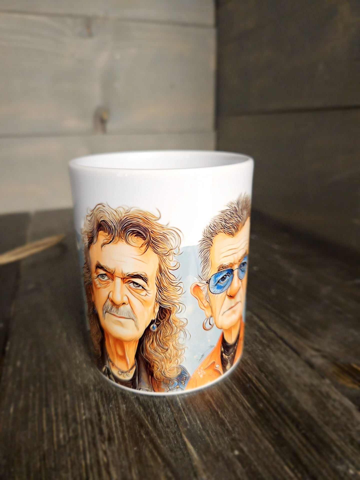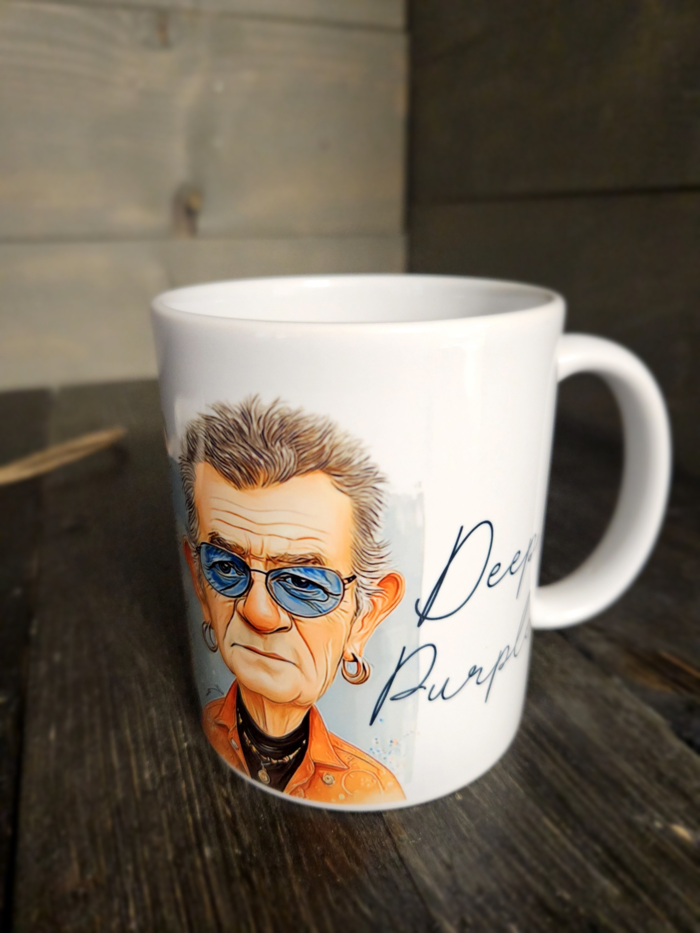 Deep Purple együttes mintával és szöveggel nyomott bögre.