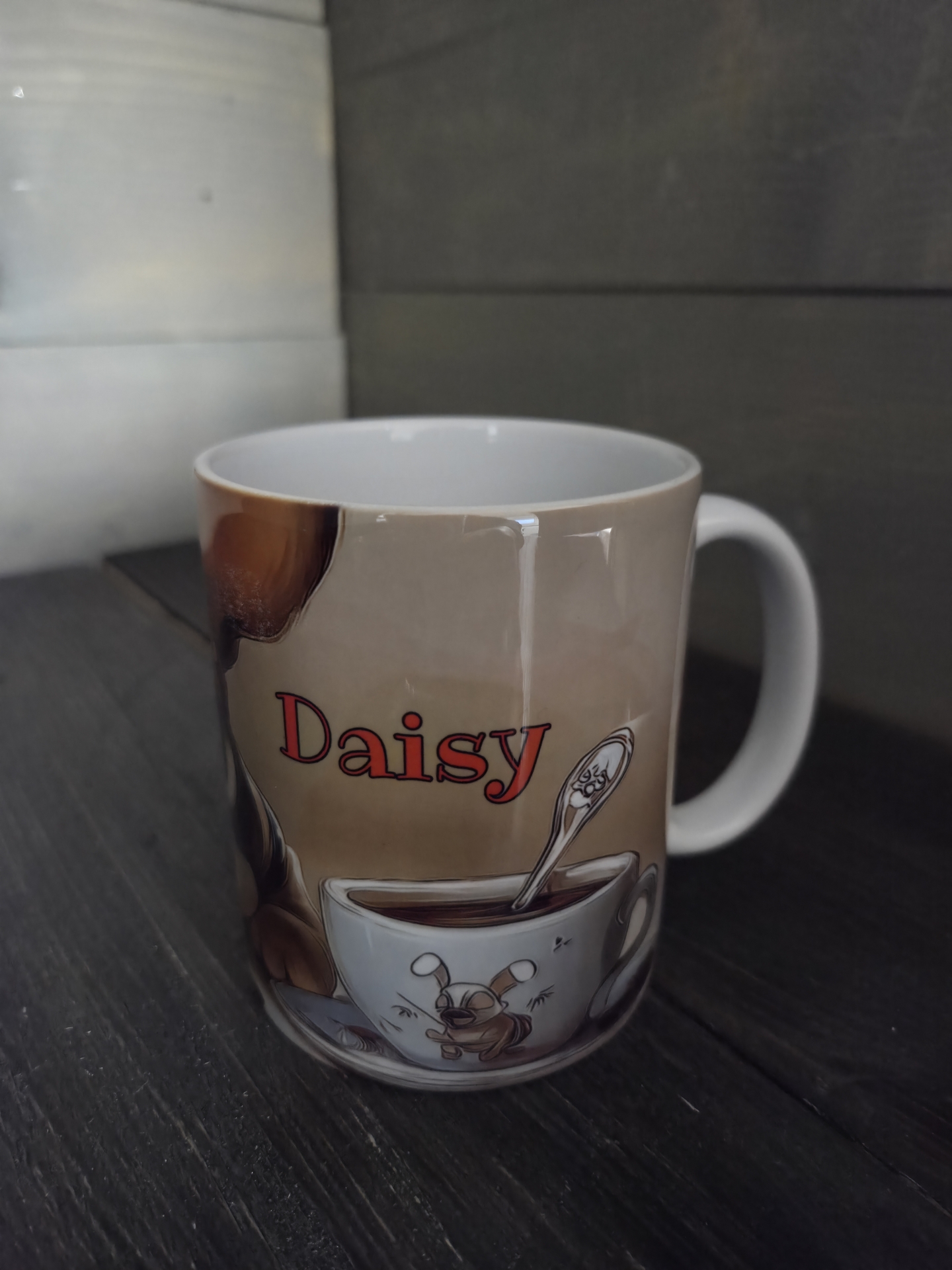 Cuki francia bulldog kutyus mintával és kutya névvel nyomott bögre a bulldog szeretőknek.