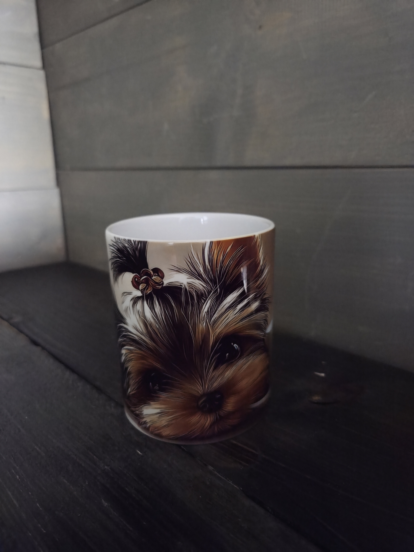 Cuki Yorkshire kutyus mintával és kutya névvel nyomott bögre a Yorki szeretőknek.