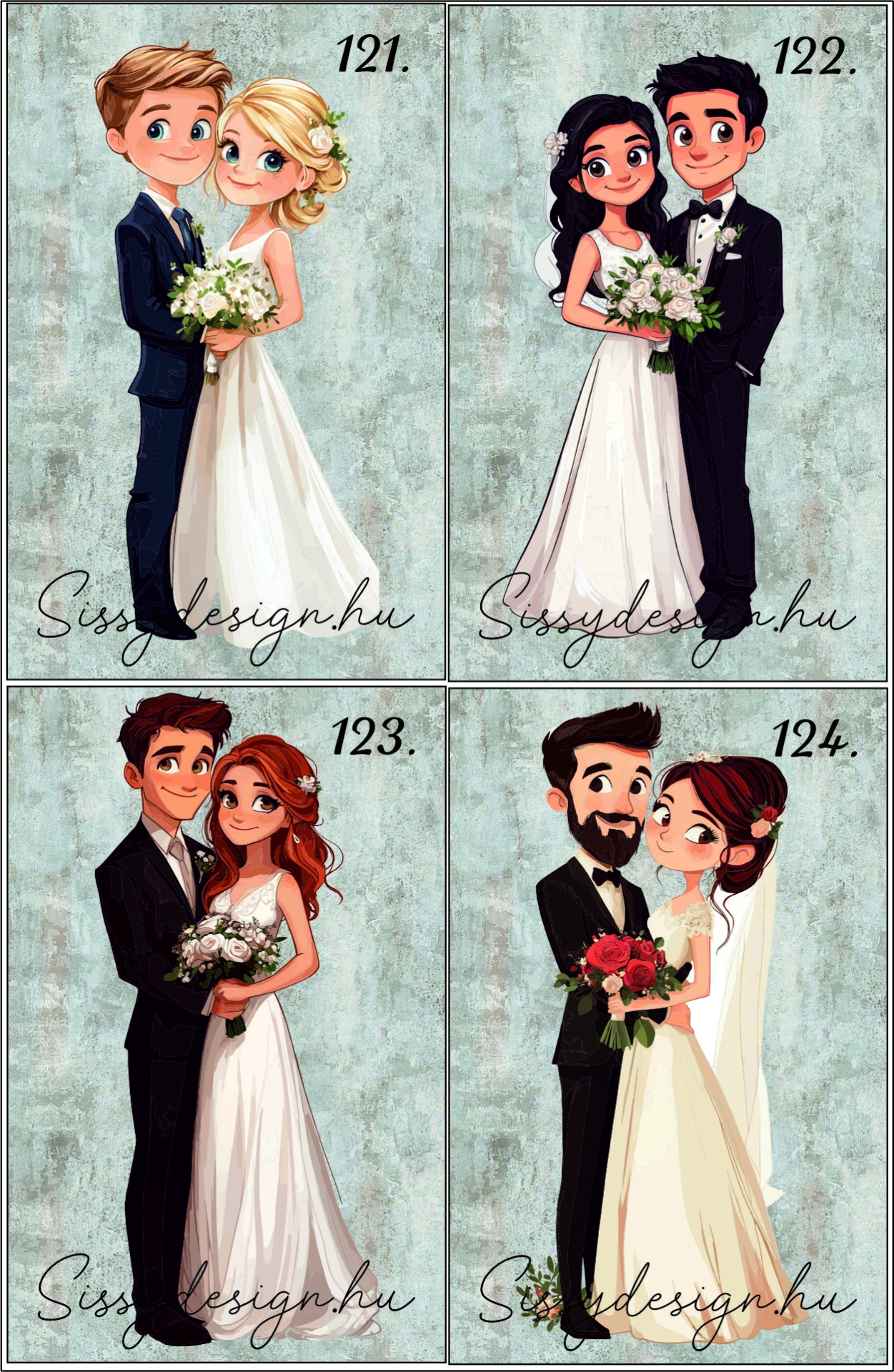 8 féle számozott pár minta közül tudsz választani, a kiválasztott minta sorszámát (jobb felső sarokban) kell csak megadnod az egyedi felirat keretben a szöveg, nevek, dátum mellé és ezek alapján készítek látványtervet.
