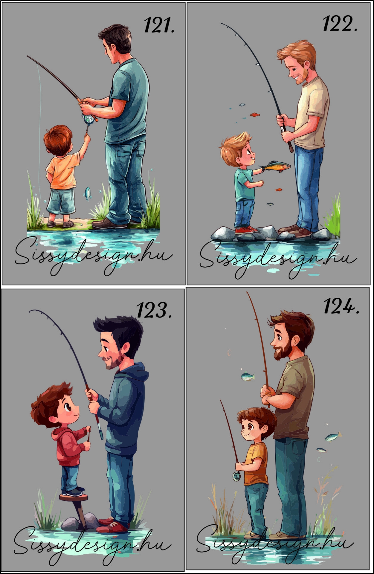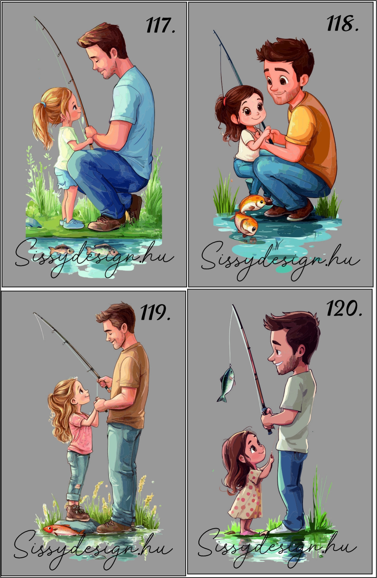 8 féle számozott apa-gyermeke minta közül tudsz választani, a kiválasztott minta sorszámát (jobb felső sarokban) kell csak megadnod az egyedi felirat keretben a szöveg, nevek, dátum mellé és ezek alapján készítek látványtervet.