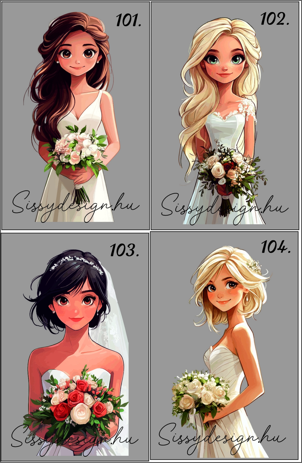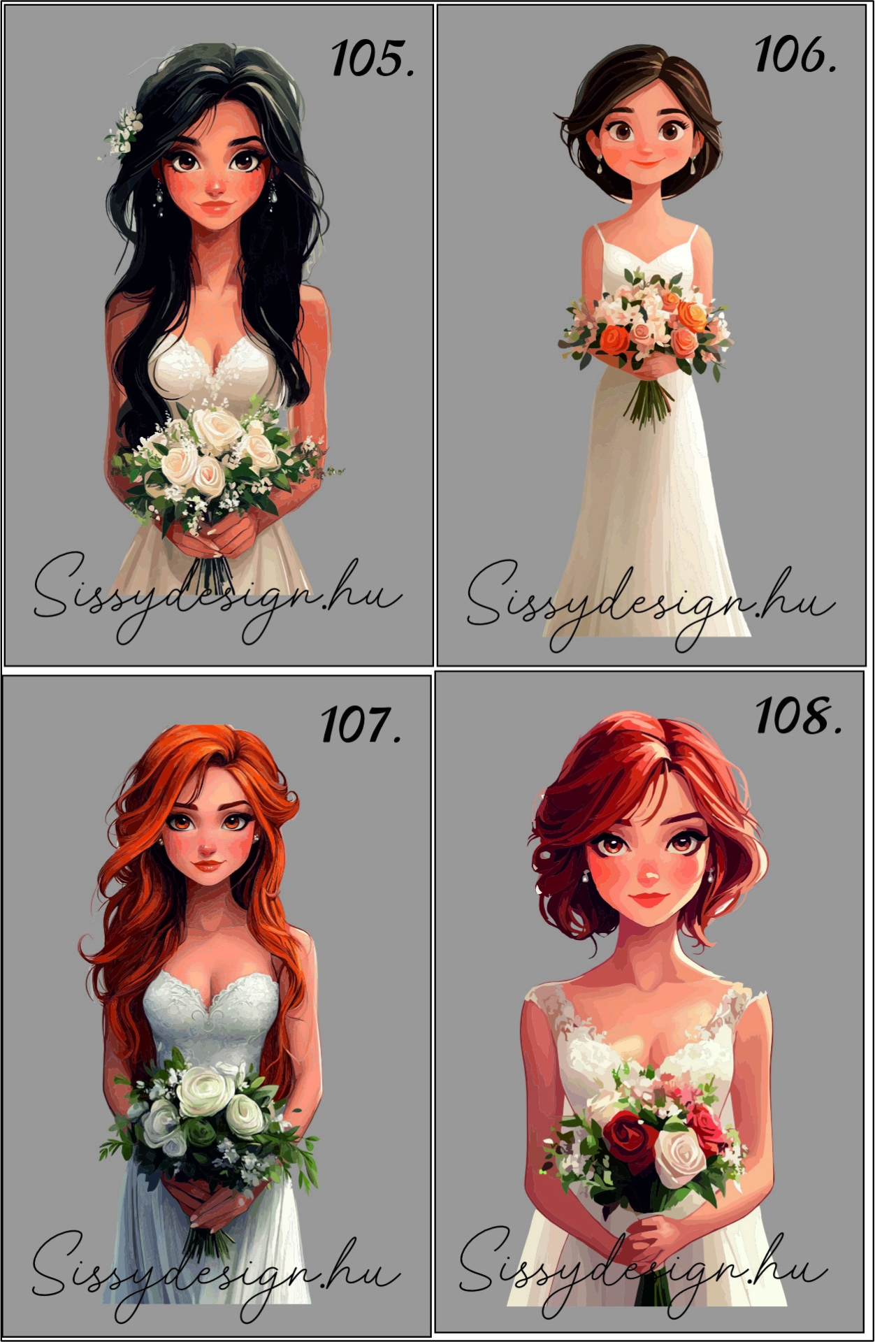8 féle számozott menyasszony minta közül tudsz választani, a kiválasztott minta sorszámát (jobb felső sarokban) kell csak megadnod az egyedi felirat keretben a szöveg, nevek, dátum mellé és ezek alapján készítek látványtervet.