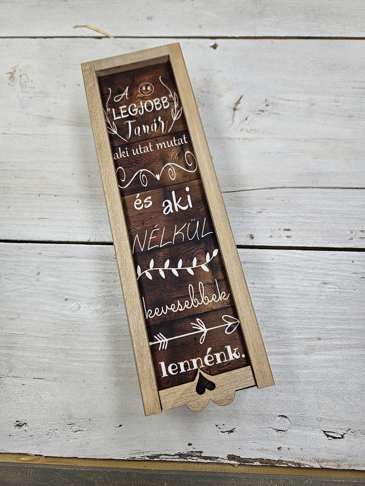 A doboz rendelhető bármilyen más mintával, szöveggel az oldalára kérhető egyedi szöveg, akár személyes üzenet is, a doboz aljára akár az osztálynévsor is gravírozható, erről előzetesen látványtervet készítek, amit emailben küldök majd meg a megrendelés után.
