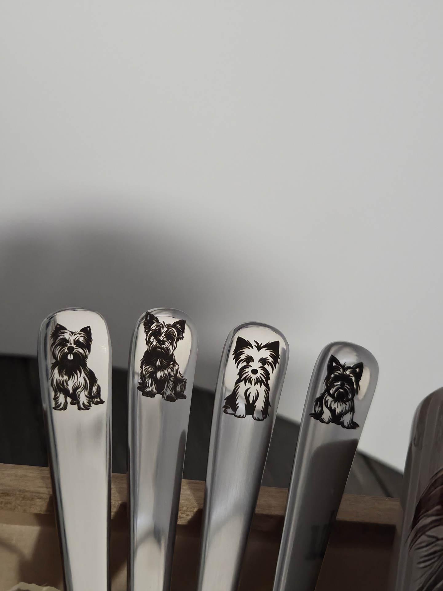 A kutyusok nevét, egyedi szöveget megadhatsz a dobozra, bögrékre és a kanalakra is az egyedi felirat keretben, azután pedig látványtervet küldök róla emailben.